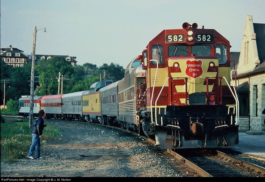 Engr. R.R. Conway explains the significance of his sharp dressed engine and passenger train to a local. The Northwoods Explorer, having traversed serveral forgotten (and some now abandon) rail lines in northern Wisconsin and Upper Michigan, has stopped to take on food and drink for the last meal and 100 miles of the trip into Chicago.