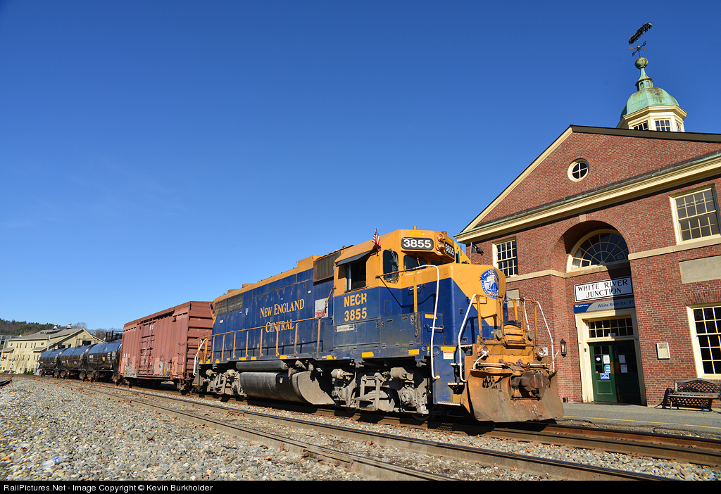 RailPictures.Net Photo: NECR 3855 New England Central EMD GP38 at White River Junction, Vermont by Kevin Burkholder