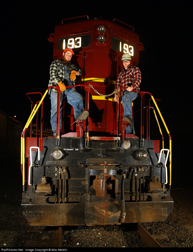 The Missabe was a proud railroad, as evidenced in this 1996 scene as the machinist and hostler take a break to pose for a picture as they prepare the #193 for shipment to the WC. Right? ;)