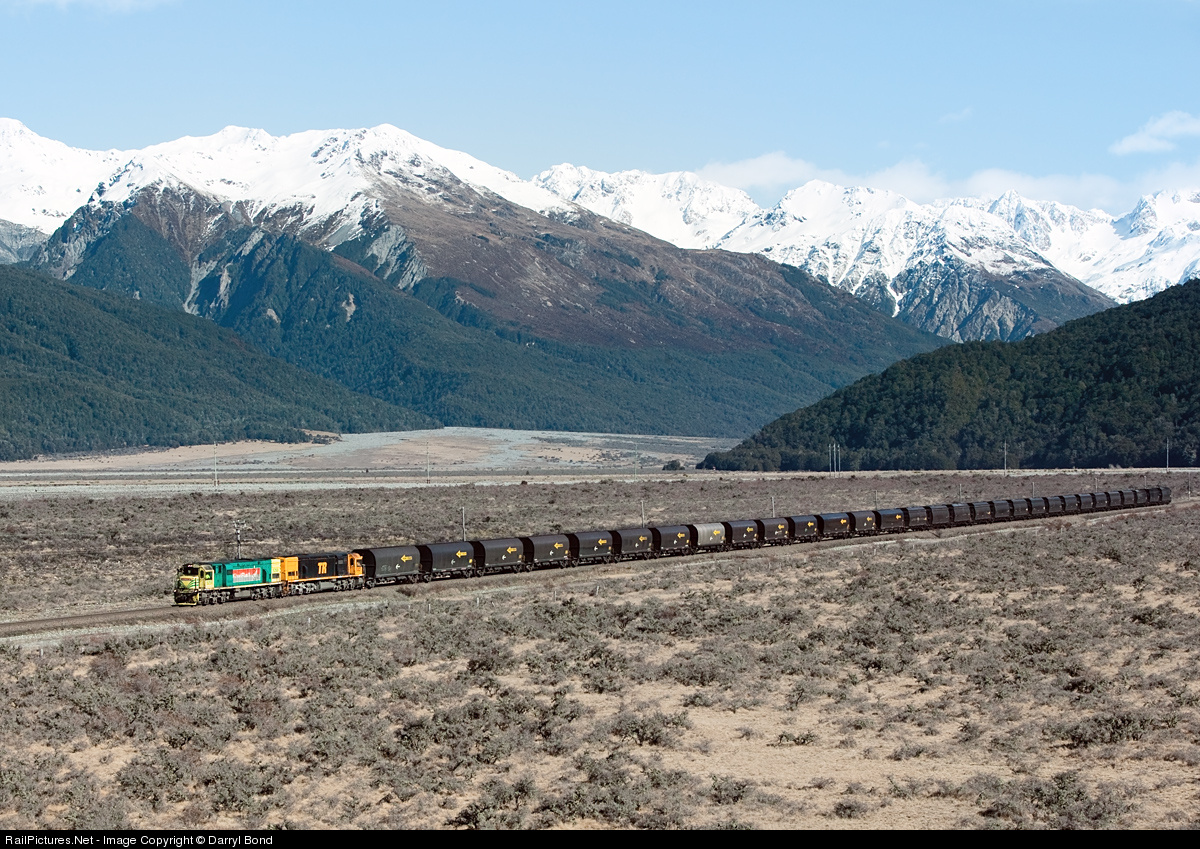 Trains on 3' 6" (1.067m) track from Whangarei to Bluff with virtually heritage rebuilt EMD and GE locomotives still the mainstay power. The network was privatized in 1990's and operated by Toll until 2008 when state owned KiwiRail was established.