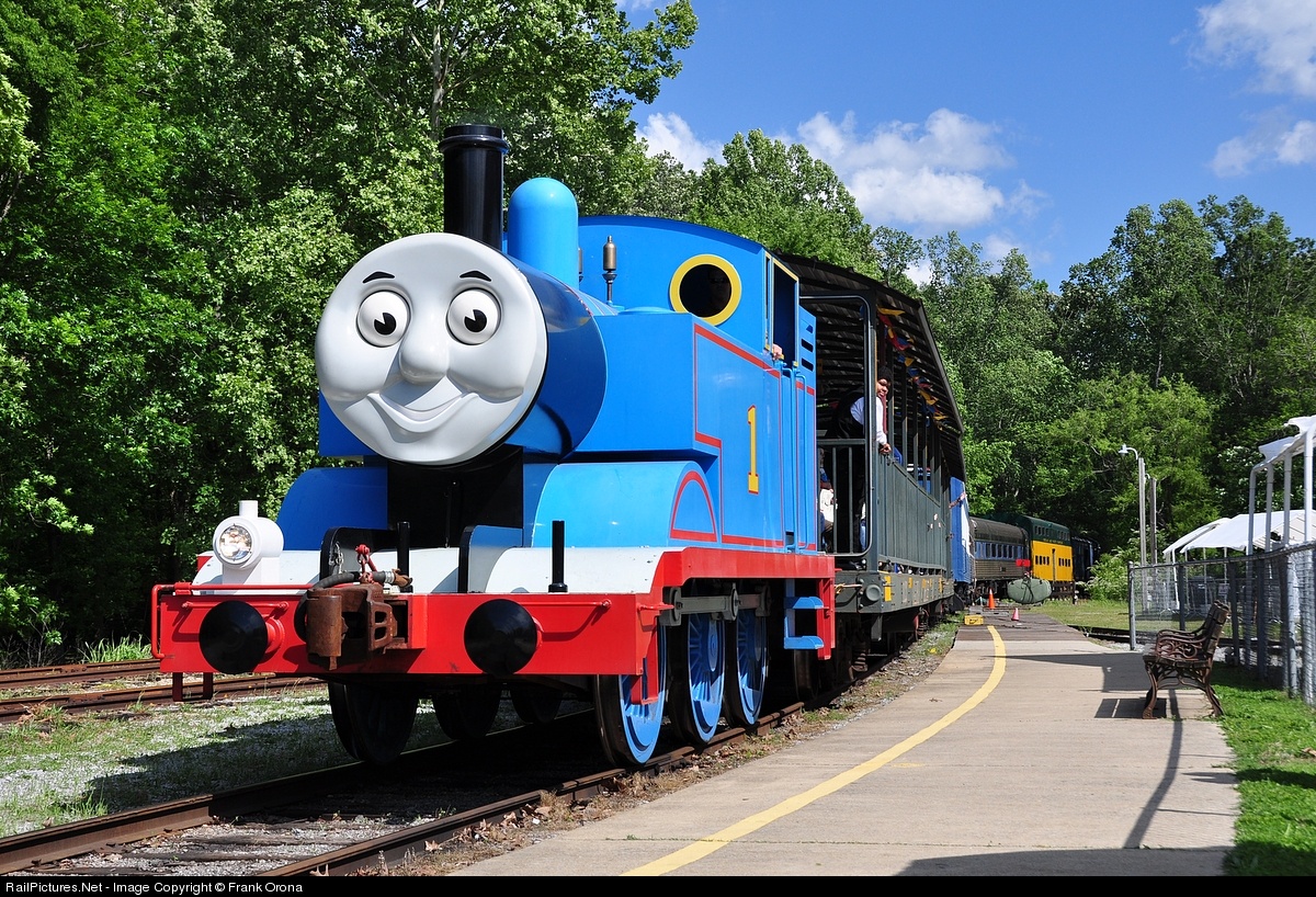 Thomas the Tank smiles, like always, as the famous engine from Sodor brings passengers back from another ride along the line at the Heart of Dixie Museum.