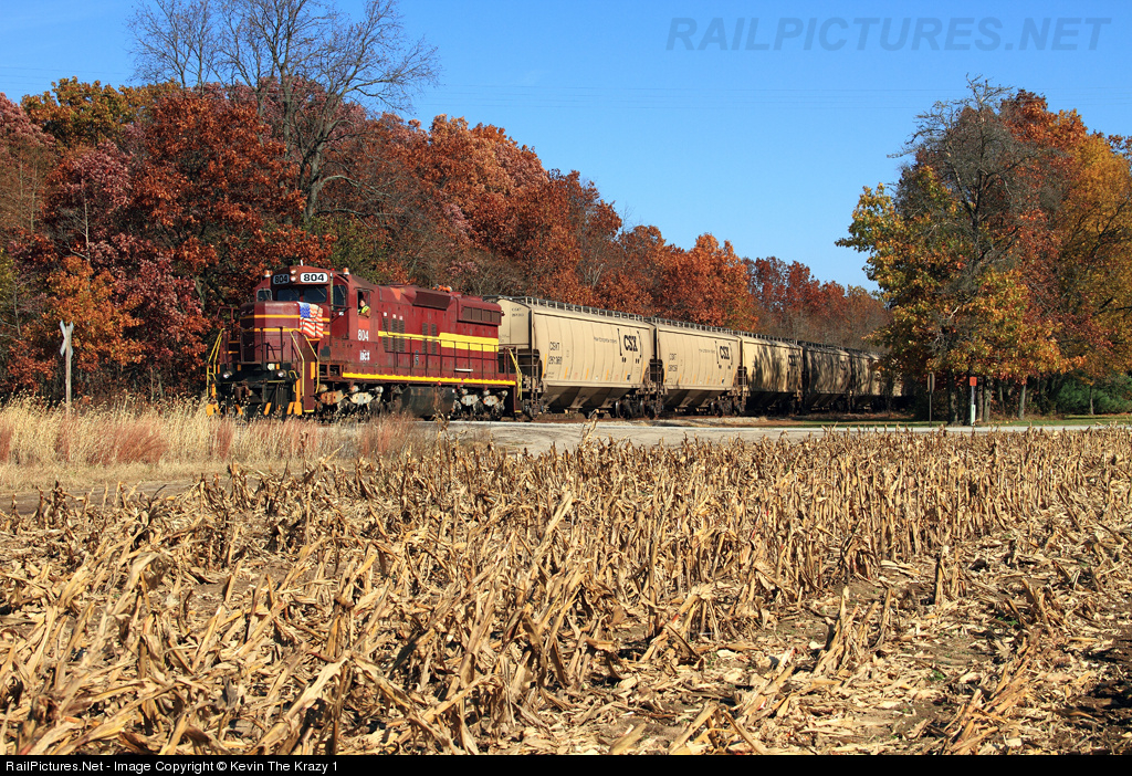 | Former DMIR SD18 #169, became EJE 804 and was sold to the Indiana Box Car Corp after the CN take over. It then found a new life on the CKIN in northwestern Indiana Here, the 804 is seen heading south across County Road W1475S with a cut of grain empties for the elevator at Malden. |