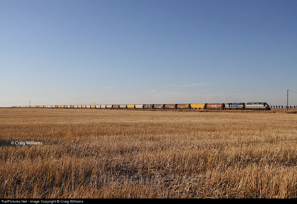The Huron, SD, to Onida, SD, local is making a Harrold Turn today instead of going to Onida. Here they head back with 57 cars from Harrold. The train is about to past thru the small community of Holabird located between Harrold and Highmore.