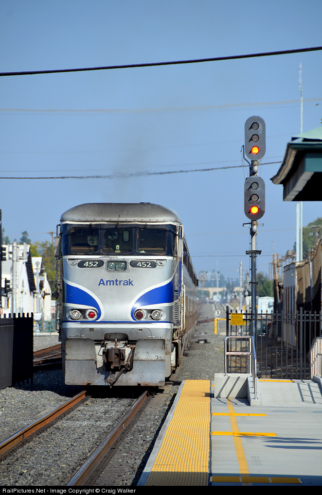 Only two of the many Amtrak Pacific Surfliners stop in Orange, California, which is primarily a Metrolink stop. On Thanksgiving Day 2012, train #567, the only northbound that stops in Orange, accelerates out of the station as it heads from San Diego to Los Angeles.