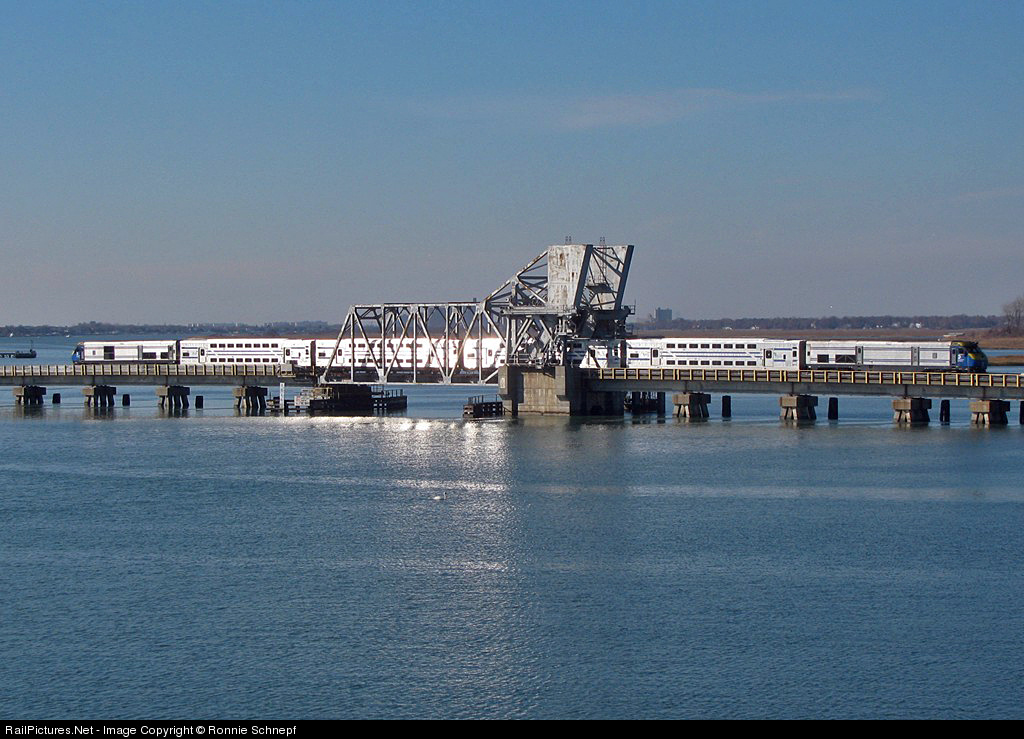 The effects of Hurricane Sandy. Three weeks ago, much of the LIRR's Long Beach Branch was flooded by the hurricane's massive storm surge, leaving the railroad's substations and other infrastructure crippled. As repairs have been made by crews working 24/7 over the past couple of weeks, the LIRR has been running very limited diesel service, providing a rare opportunity to see locomotive hauled trains on a line that never sees them otherwise. One such train is seen here crossing the Wreck Lead drawbridge between Island Park and Long Beach. The railroad hopes to have electric service up and running by next week, as the area slowly struggles to return to normalcy.