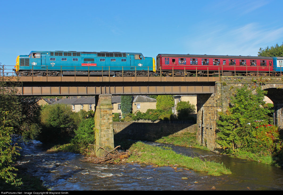 55019 crossing Brocksbottom Viaduct during the East Lancashire Railway 'Deltic Gathering'.