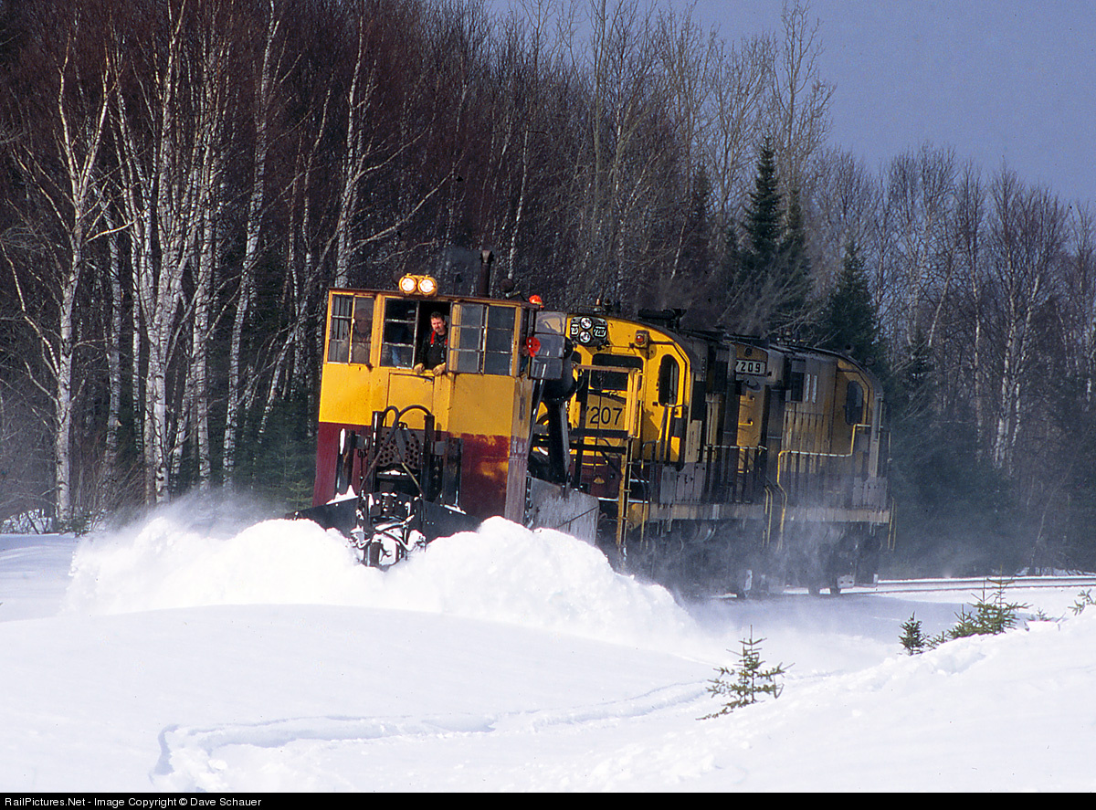 Two RS11s power a plow extra on LTV Steel Mining Company's mainline to Taconite Harbor prior to the late March opening of the shipping season. This would be LTVSMC's final year.
