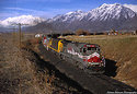 A colorful power combo leads BNSF's Stockton, CA - Denver, CO trackage rights manifest east through Sutro Cut on UP's Provo Subdivision.