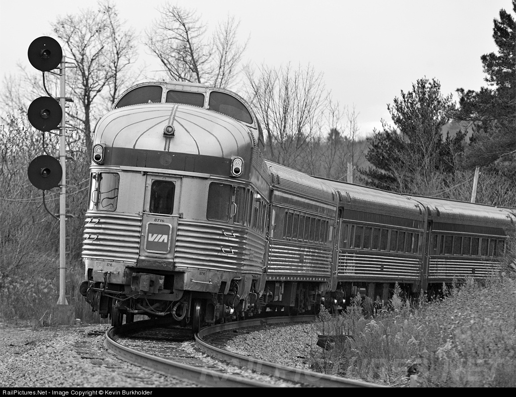 | The end... The final November southbound run of the leased VIA Rail equipment on Amtrak's Montreal-Albany corridor Adirondack trains took place on November 27. Amtrak P42DC 43 hauled the final southbound train 68 out of Montreal and on to Albany with the Park Car markers extinguished following this trip. Leaning into the super-elevated curve at the north end of Howard's Siding, the Park Car is making the last trip during the week-long Thanksgiving Holiday lease. |