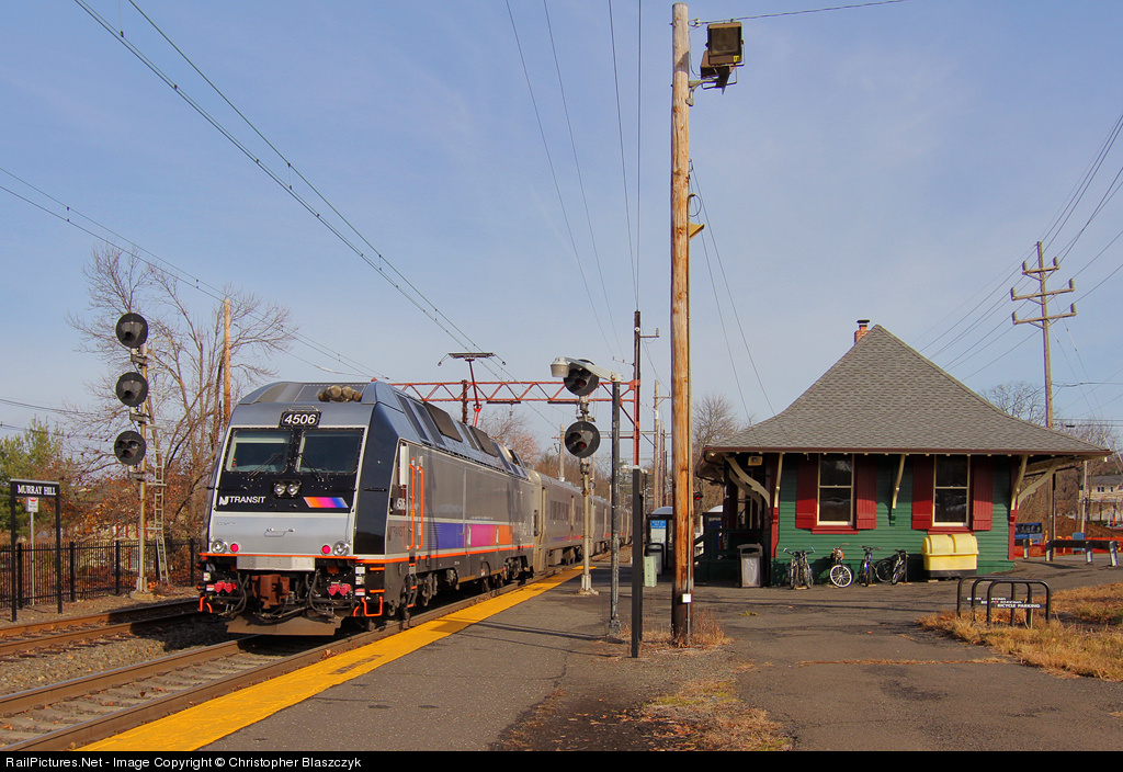 Restoration of service. More than a month after Hurricane Sandy came ashore in New Jersey, service resumed on NJ Transit's Gladstone Branch on Monday, December 3, 2012. With the catenary still out from Kearny to Hoboken, the dual-mode ALP45s have replaced the line's typical Arrow sets on runs to and from Hoboken, with 4506 seen here shoving a mid-day eastbound train through Murray Hill. This line was the last NJT line to resume service, due to many fallen trees and broken wooden catenary poles.