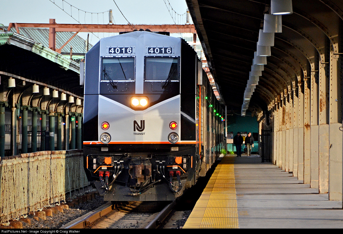 A New Jersey Transit train prepares to depart Hoboken, New Jersey, on December 29th, 2011. NJ Transit rosters a number of diesels not found elsewhere, and the lead diesel on this afternoon's train, PL42AC 4016, is one of them. Equipped with four axles, PL42AC were built by Alstom with EMD 16-710G3B-T1, V16, 2-stroke diesel prime movers. The first batch of these, which includes 4016, were constructed at the Meinfesa plant in Valencia, Spain in 2003. (The later orders were assembled at the Alstom Transport plant in Hornell, New York from 2004 to 2006.)