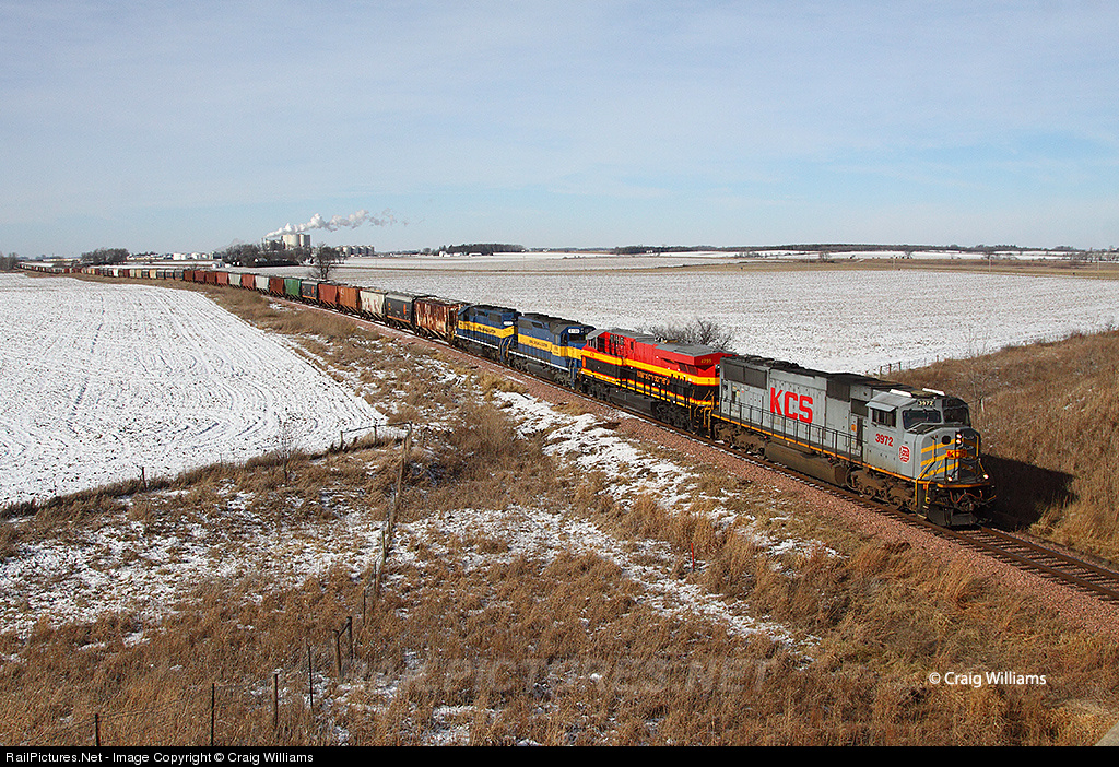 360 is now on the move east out of Valero with the KCS power added to the headend for the trip to Marquette. This 360 is a KCS Feeder Grain Train that loaded on the Jackson Sub. The KCS power will run thru with the train to Kansas City and back to the KCS there.