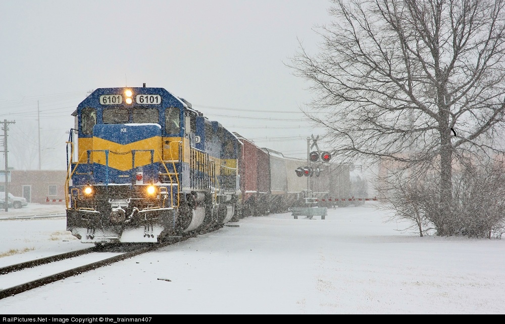In the midst of a heavy band of snow caused by winter storm Draco, a pair of blue and yellows shuffle cars around Wells MN. With inclement weather and a set out at Alden MN, this job, which normally make it to Austin MN by noon, will not make it there until around 3 PM.