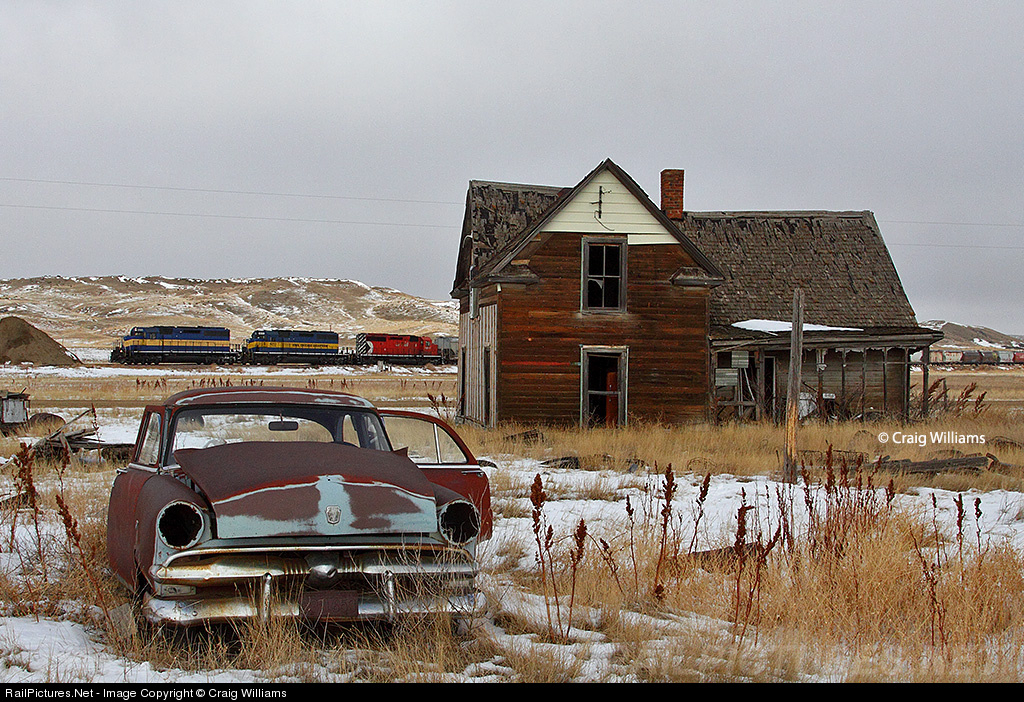 The Huron, SD, to Rapid City, SD, freight is about 20 miles west of Pierre. Here they past one of many abandoned farmsteads thru this area the PRC Sub passes. Once full of life at a time long ago, now sits and rust away to time.