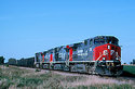 After the Geneva ore contact was up and going SP assigned their best/newest power to service to it. That brought new GE's onto WC/DM&IR for the trip from Chicago to the Mine. Four nearly spotless Dash 9's have conquered Byron Hill and have a good roll on SPLD-18 as they roar through Lomira. SP 8141,8131,8139 and 8124 lead the way on a sunny September afternoon.