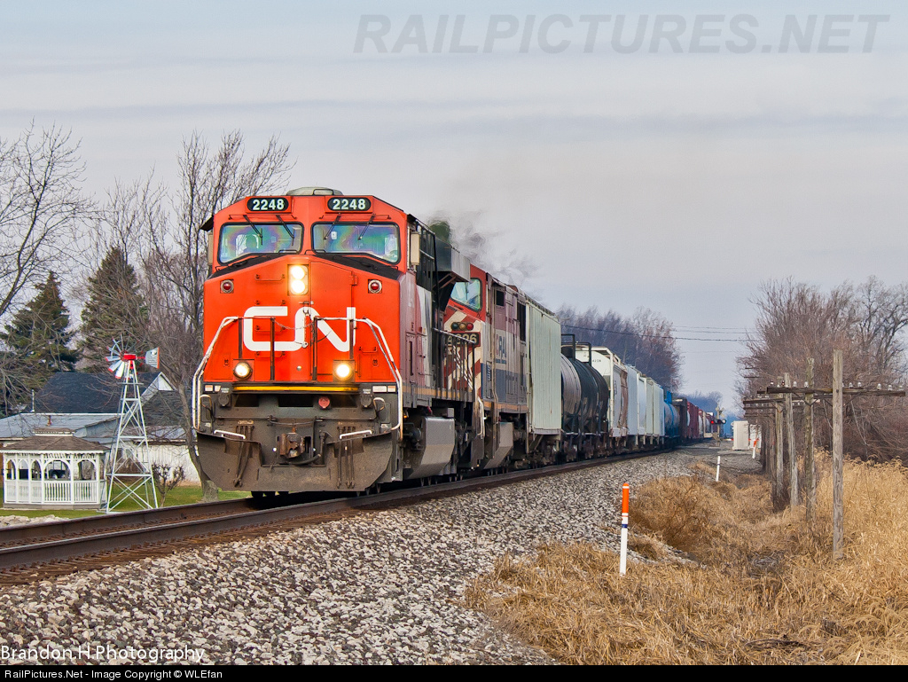 CN 2248 Blasts through Kingsway,OH with a BCOL C40-8M second out on a chill November day in Northwestern Ohio, this train is just minutes from Fremont,OH. Also of notice to the right side of the train, you can see Code Line still in place from former days of use.