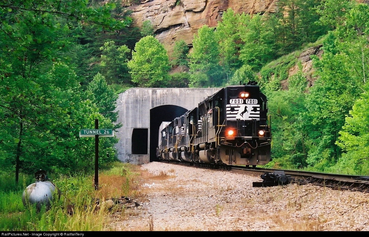 NS #7001 one of three GP40X's that NS has leads a South Bound out of Tunnel 26 MP255.5