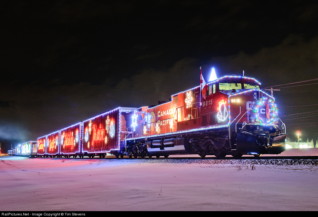 CP's Holiday train pauses in Leduc, AB while the on board show commences on the west side of the train.