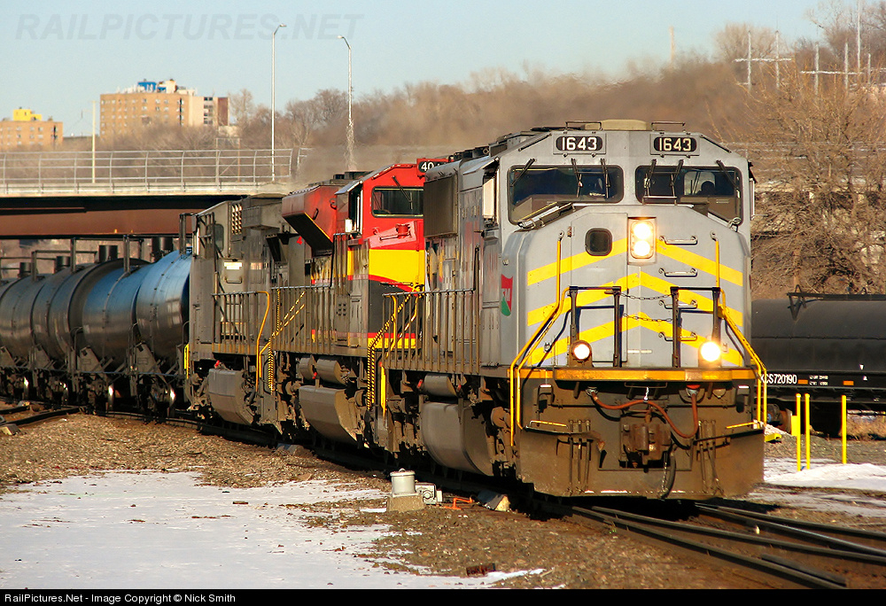 TFM 1643, along with a KCS Belle ACe and a KCSM AC4400, is leading this BNSF freight through Santa Fe Jct. toward Argentine Yard.