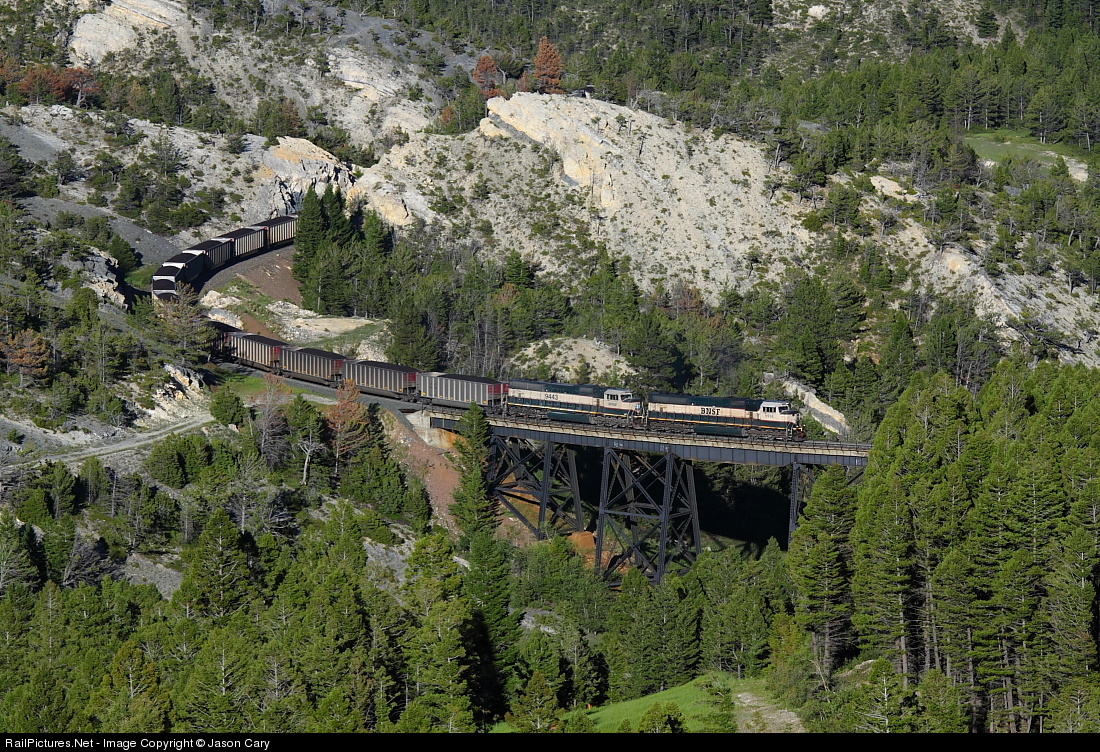 Two BN Executive SD70macs roar over the Skyline Trestle. These units are quickly falling off the line as 1st choice coal power.....