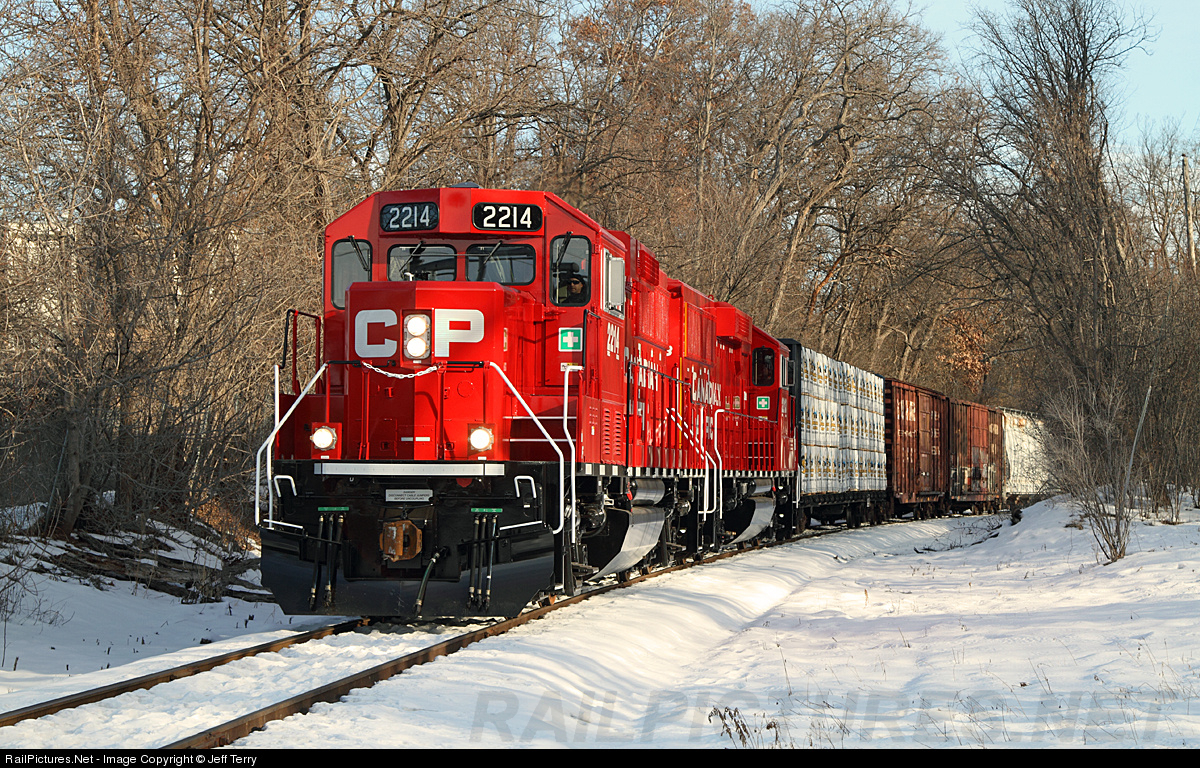 Brand new CP GP20C-ECO No. 2214 emerges from the tree tunnel at Hansen Road in Edina. Scenes like this are typical of the scenery found along Canadian Pacific's 18-mile MN&S Spur. The rails were originally put down in 1908 by an interurban road, the Minneapolis, St. Paul, Rochester and Dubuque Electric Traction Company, better known as the "Dan Patch Line." After bankrupcy, the Dan Patch evolved into the Minneapolis, Northfield and Southern Railway, a successful short line that operated independently until being acquired by the Soo Line in 1982.