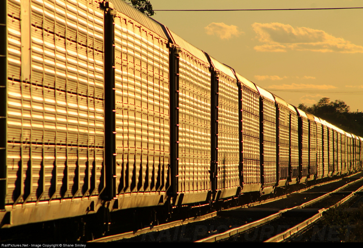 Oooohhh! Shiny! A CSX train with auto frames and autoracks slides on by CP 230 in Muncie, Indiana.