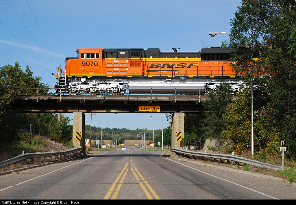 This is sort of the "Google Street" view of a brand new BNSF SD70ACe rolling across the overpass in Granite Falls, working as a DPU of a northbound coal train.