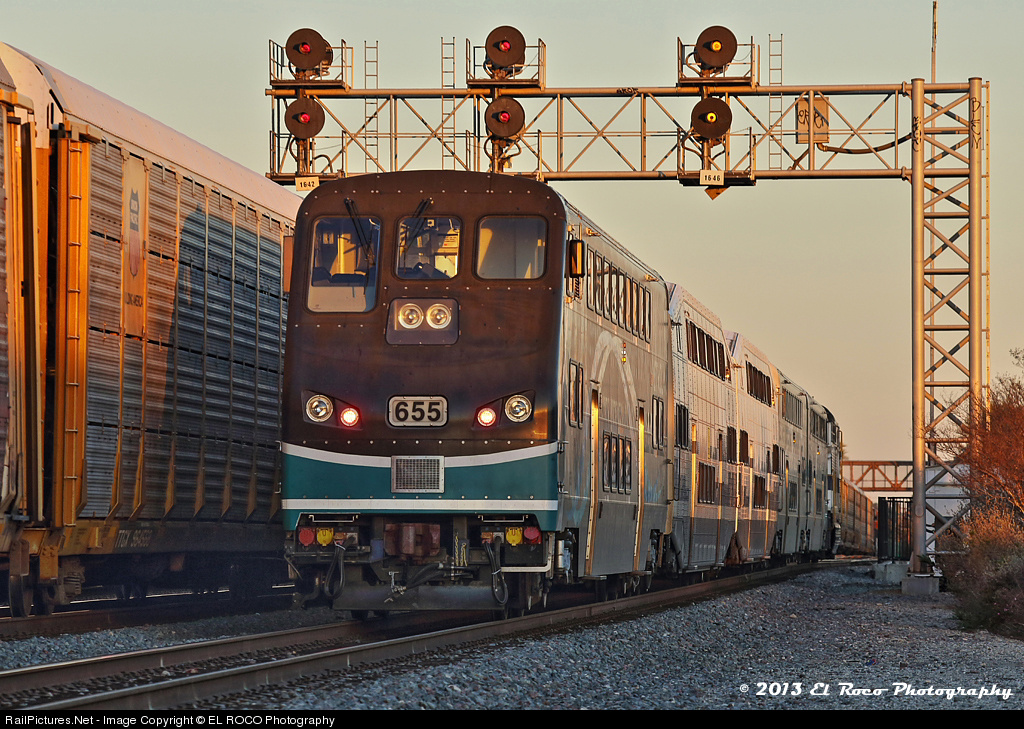 SCAX 655 at Fullerton - Metrolink Train 604 approaches the station at Fullerton California as the WATBAR sits on main #2 at the signal at EBCS Fullerton Junction.