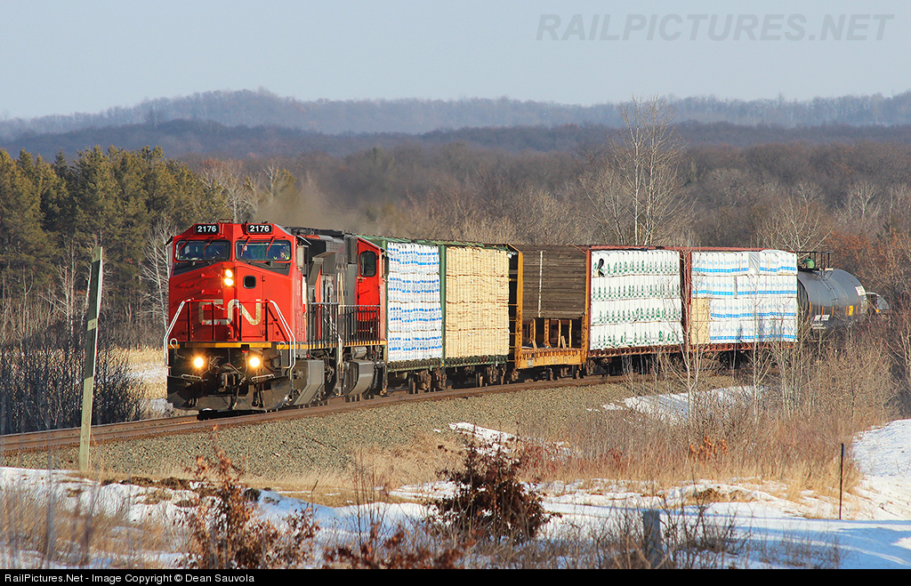 Train L517 is climbing out of the gentle Hay River valley east of Colfax, WI. Cold subzero daytime temperatures have pushed back the schedule for train L517 on the CN Minneapolis Sub. Normally a nocturnal trip, this day's run took place in nice winter afternoon sunlight. The sun was the only warm thing about this day, temps started at -12F and only warmed up to -5F during the day.