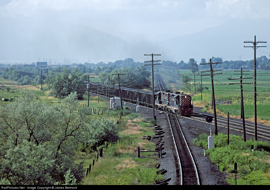 A pair of Rio Grande GP9s drag a heavy coal train across the Union Pacific Provo Subdivision at Lakota Crossing. In 1985, these diamonds were removed and switches added to connect UP trains onto the Rio Grande mainline to Salt Lake City and Provo.
