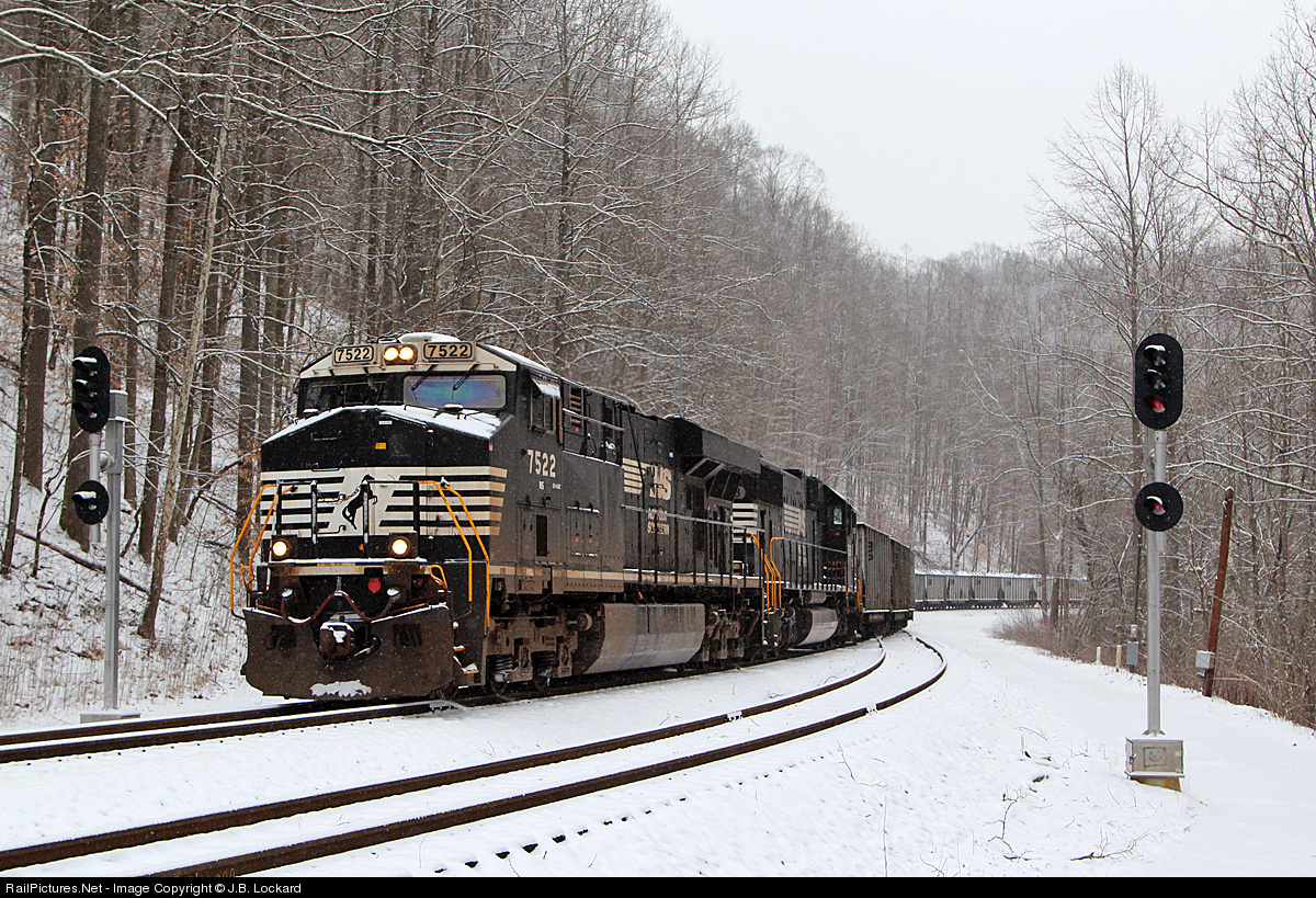Appalachia coal railroading in the winter, nuthin' finer! Here, an NS coal train comes off the Gilbert Branch loaded and takes the west leg of the wye, which will lead to the Pokey main. The Gilbert Br. is strictly a coal hauling route that allows coal off the P-D District a direct southern route to the Pocahontas Dist.