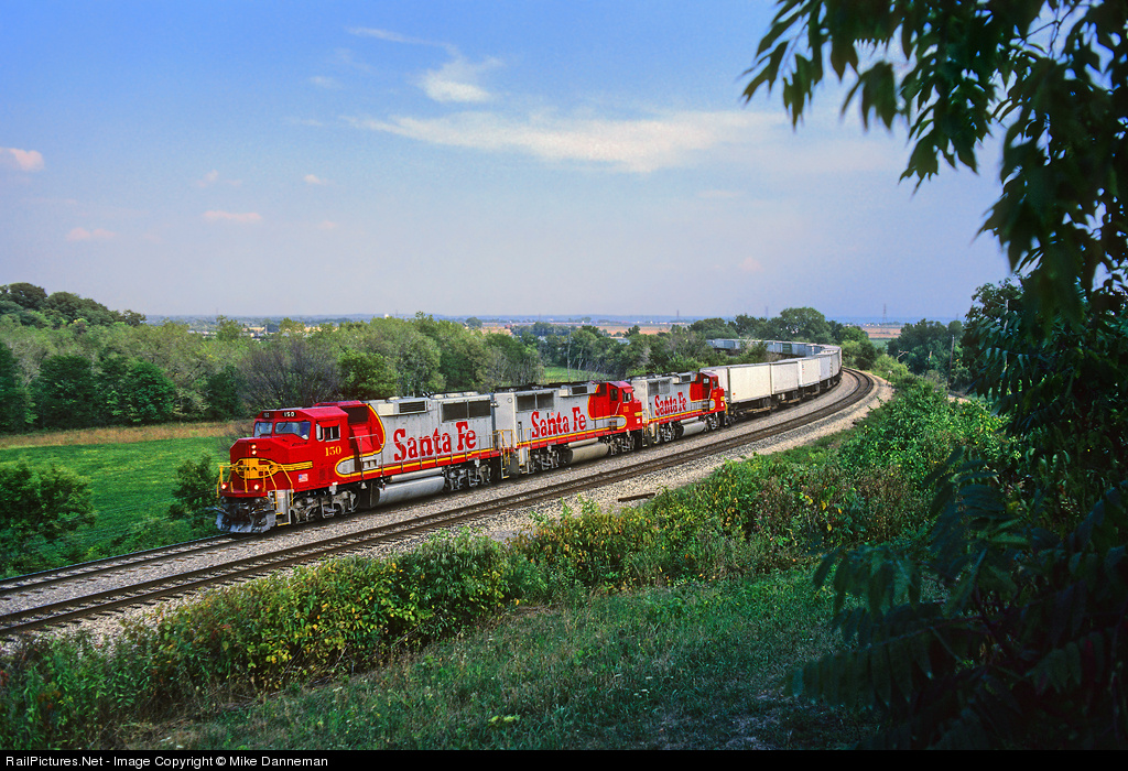 Hottest of the hot At 4:30 p.m. on August 24, 1991, Santa Fe’s 199 train is just moments out of Chillicothe, and getting up to a good speed for the jaunt around Houlihan’s Curve and Edelstein Hill in Central Illinois. The hottest of the hot, the 199 train was a premium Chicago to the Bay area piggyback, and always train rated the newest power, which in this case is three EMD GP60Ms: Nos. 150, 111 and 137.