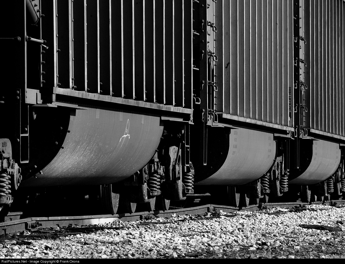 The weight of empty aluminum coal gondolas show their rail bending capabilities as they sit atop 90 lb rail rolled only miles east of this location at the