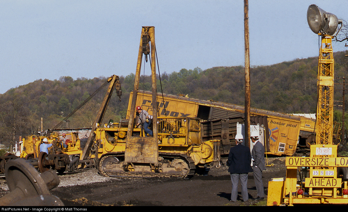 In the early morning a train carrying tankers with hazardous chemical residue and propane derailed in the center of town forcing the evacuation of 1,100 people. I was a senior in high school and had a Konica TC 35 MM camera. I blew off school and somehow talked my way into town to take a few shots. Residents of confluence were evacuated to the school outside of town and were allowed back into their homes at dusk. As I remember a car jumped the track and rode the ties until it reached the crossovers from track 1 to track 2 which caused 27 cars to come completely off the rails. Sadly the dangerous reality of working on the railroad reared its ugly head as a 38 year railroad veteran who was the tower operator at Confluence (CF) was killed when the derailed cars ran through the tower which sat next to the tracks. After this derailment the crossovers were moved approx. 1 mile to the west out of town.