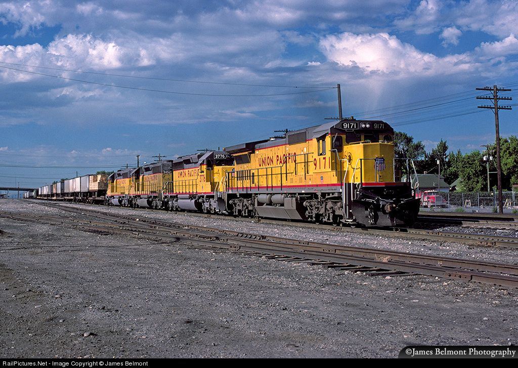 Before the SP and UP merged in 1996, Union Pacific's California Bay Area traffic was routed via the WP through Salt Lake City. A hot Oakland to North Platte Z-train approaches a crew change at North Yard prior to resuming its journey north to Ogden then east to North Platte.