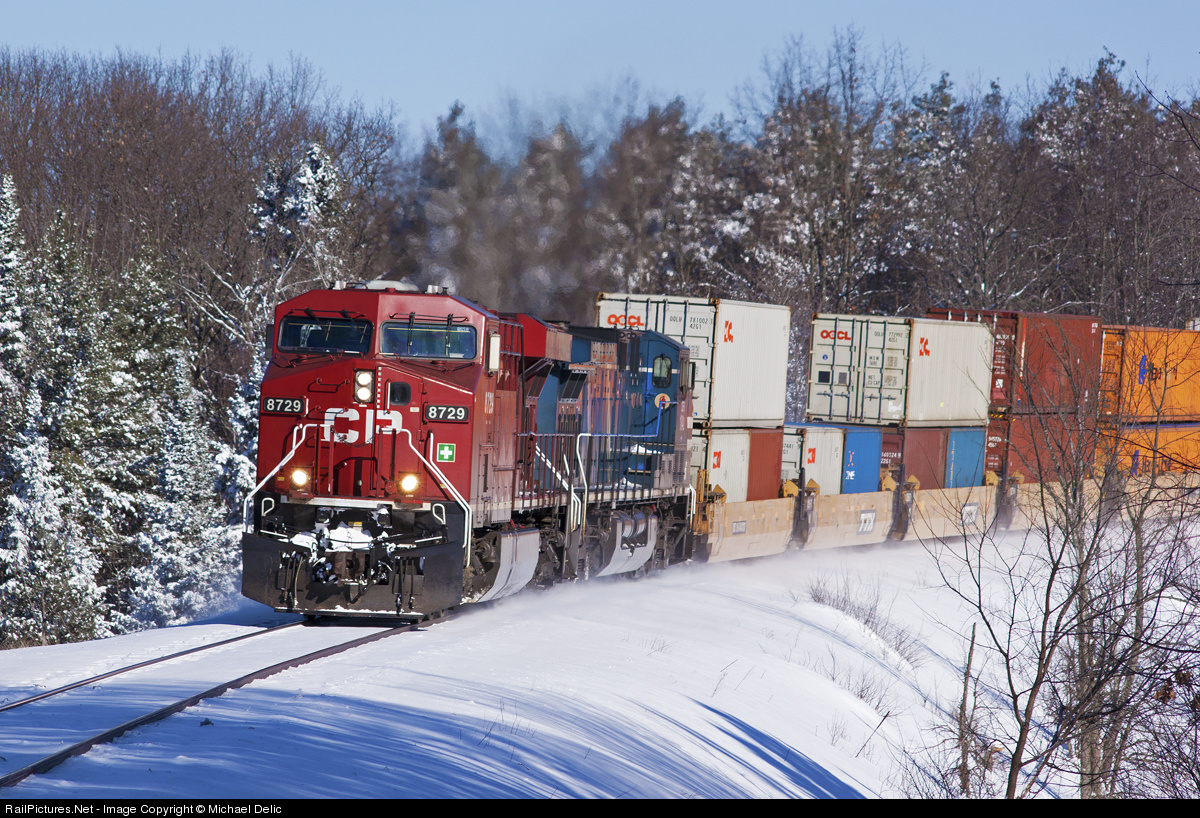 | After a huge snow storm dumped 40cm on the Barrie-Orillia area, a southbound CP intermodal train makes its way down the MacTier Subdivision. Today was one of those rare days that the weather was pure sun after a huge snowfall. |