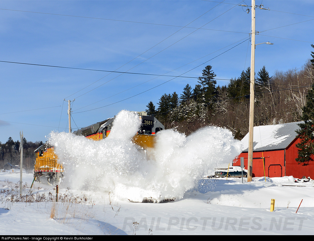 Following Winter Storm "Nemo", operations on the New England Central Railroad were shut down through Saturday afternoon, when a 'Driftbuster' light engine move was dispatched out of St. Albans, Vermont to Brattleboro. NECR SD40M-2 2681 and 2714 are clobbering drifts and crossing piles in Roxbury, Vermont on the Roxbury Subdivision.
