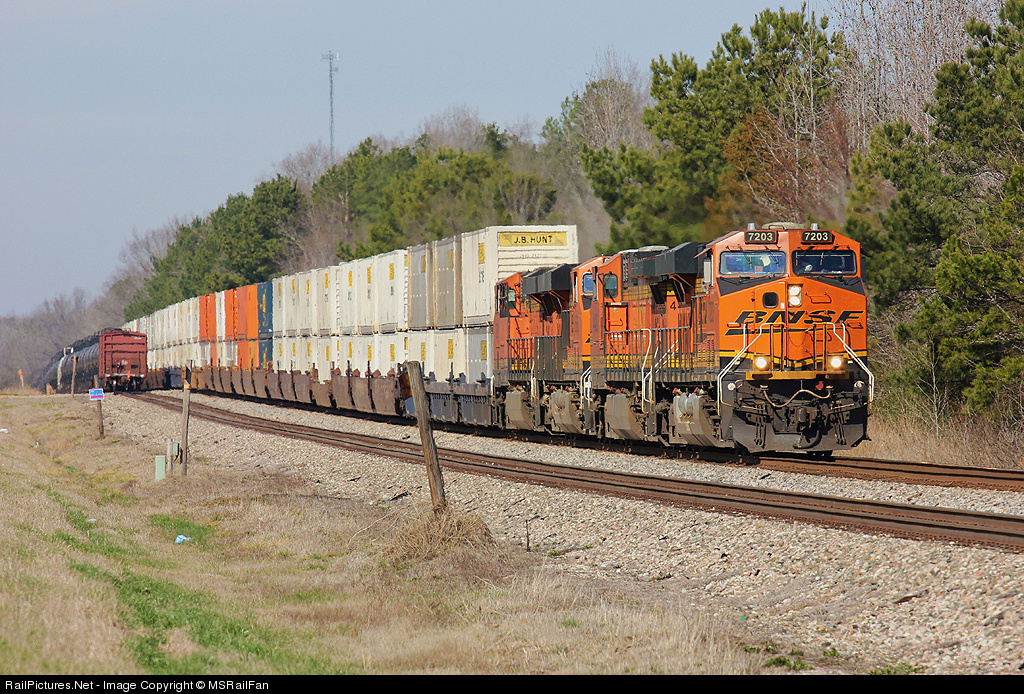 RailPictures.Net Photo: BNSF 7203 Burlington Northern Santa Fe GE ES44DC at Myrtle, Mississippi by MSRailFan