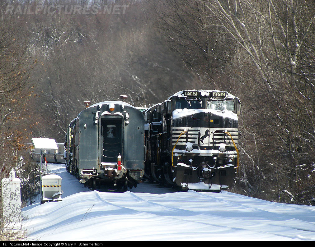 The hot intermodal and the wreck train make an odd couple as they sit snow covered the morning after the big blizzard that clobbered New England. They would not move the rest of the day as crews dug out and the railroaded struggled to regain it's footing system wide.