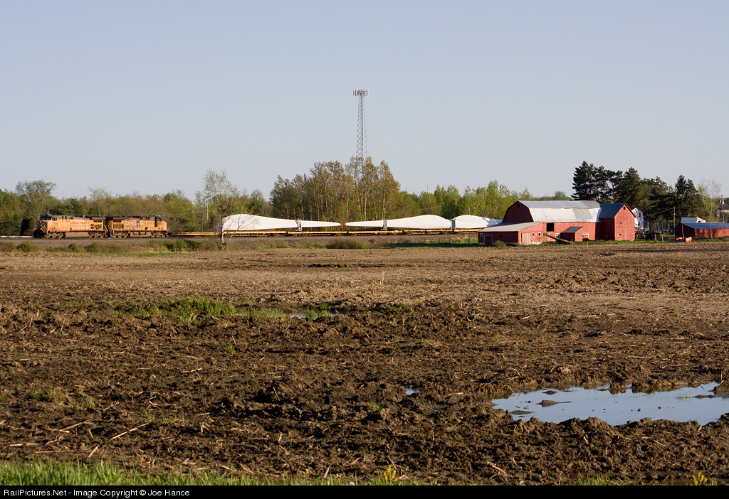 | CSX K24808 heads north to Norwood, NY, where they will hand off this train of 180' long windmill blades to the New York & Ogdensburg Railway, where they will be moved to the Port of Ogdensburg to be unloaded. This was the first of four trains of windmill blades brought to Ogdensburg during 2012. |