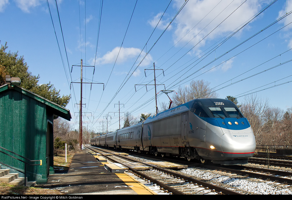 RailPictures.Net Photo: AMTK 2000 Amtrak Bombardier/Alstom Acela Express Trainset at Crum Lynne, Pennsylvania by Mitch Goldman