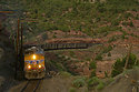 From atop the bluff over looking Palmer Lake a spectacular view can be had in all directions. A northbound is about to crest the summit of the Palmer Divide and will soon be on the down hill side to Denver.