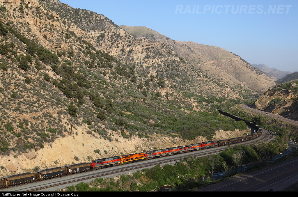 These are the swing helpers on Utah5001 west. The straight section of track the locomotives are sitting on is the steepest portion of the climb for Solider Summit... A knuckle busting 2.5%! This heavy coal load for Intermountain Power has a total of eleven locomotives (5+6).