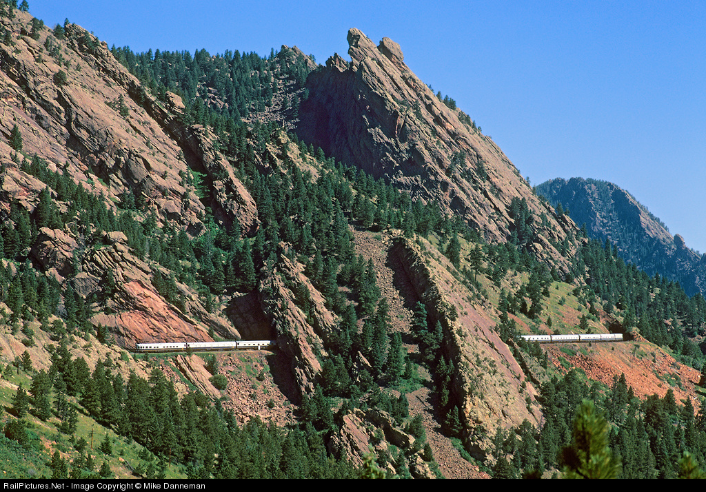 The American Orient Express luxury cruise train heads westbound through the Flatirons, through Tunnel 3 and the and into Tunnel 4 on Union Pacific’s former Rio Grande route to the Moffat Tunnel. On the rear is a former New York Central 20th Century Limited observation car now named “New York.”