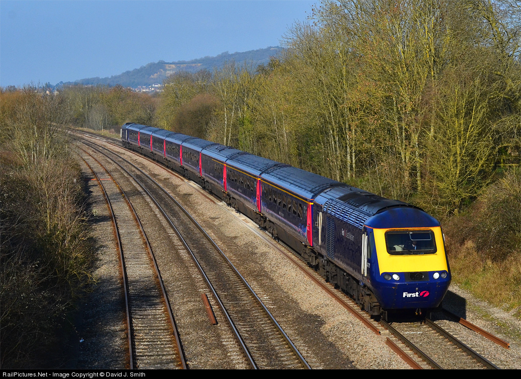 | A Cheltenham to London Paddington service speeds through the Gloucestershire countryside as it settles into its 114 mile journey.The leading power car is 43071,with 43031 on the rear,both of them having seen almost 40 years of mainline service. |