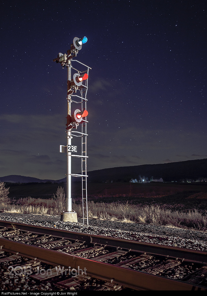 3am on a chilly February night with the northern end of South Mountain looming across the Cumberland Valley stands these signals at milepost LG23 on the Former Reading/Conrail now Norfolk Southern Lurgan Branch.