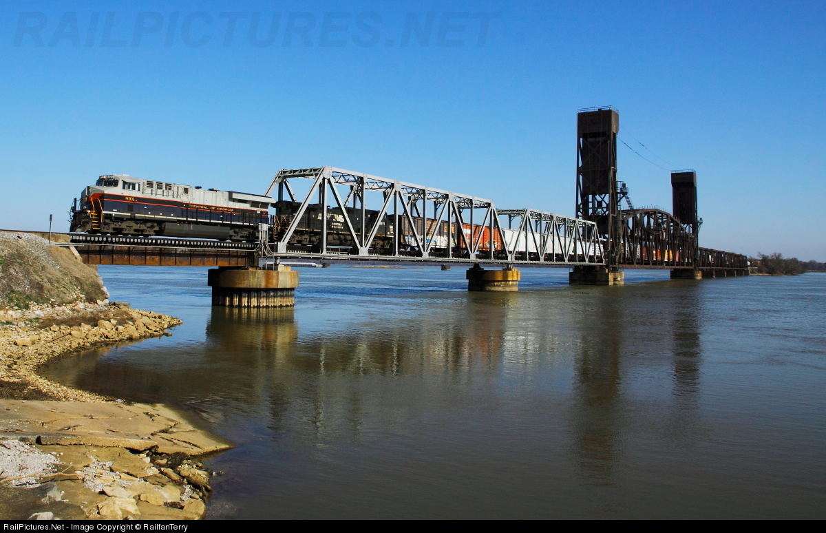NS Train 163 with NS #8101 Central of Georgia Heritage Unit crosses the Tennessee River on it way to Sheffield, AL