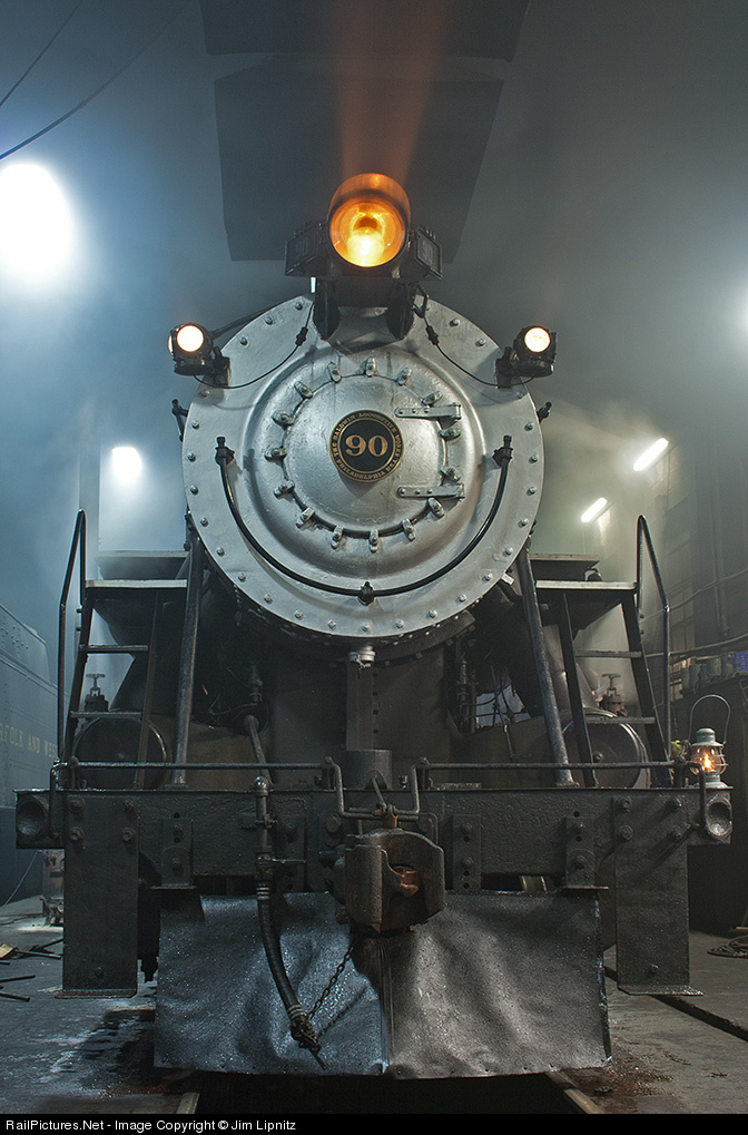 Great Western 2-10-0 #90 sits in the enginehouse in between runs on a cold February day. Taken during a Lerro Productions photo charter at the Strasburg Railroad.