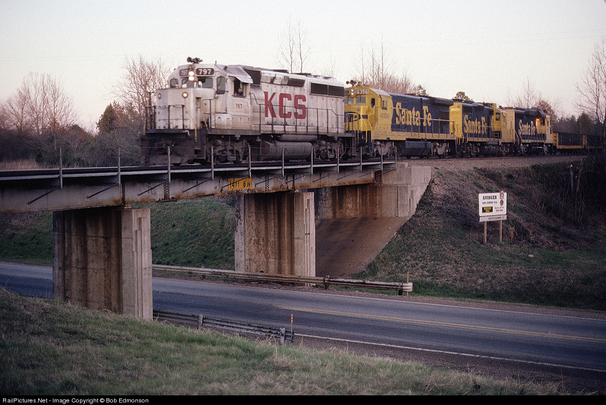 RailPictures.Net Photo: KCS 797, ATSF 6336 Kansas City Southern Railway EMD GP40-2 at Avinger, Texas by Bob Edmonson