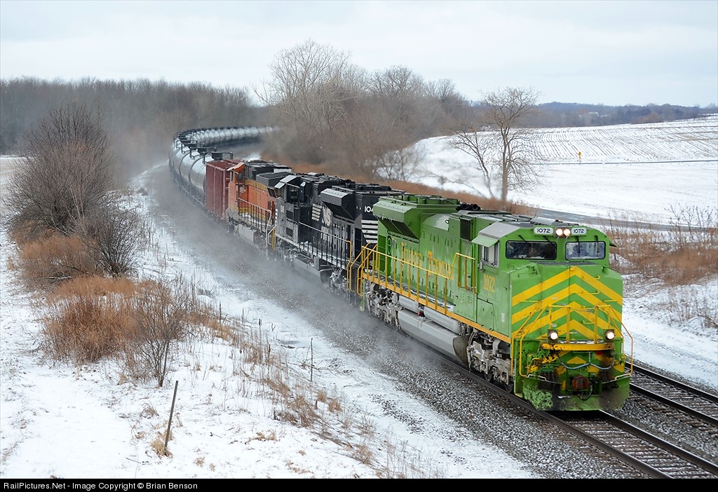 | Railfans gather as NS 1072 (IT) heriatge unit finds itself leading K010-02 as they weave through Weedsport, NY on a snowy day in upstate NY. |
